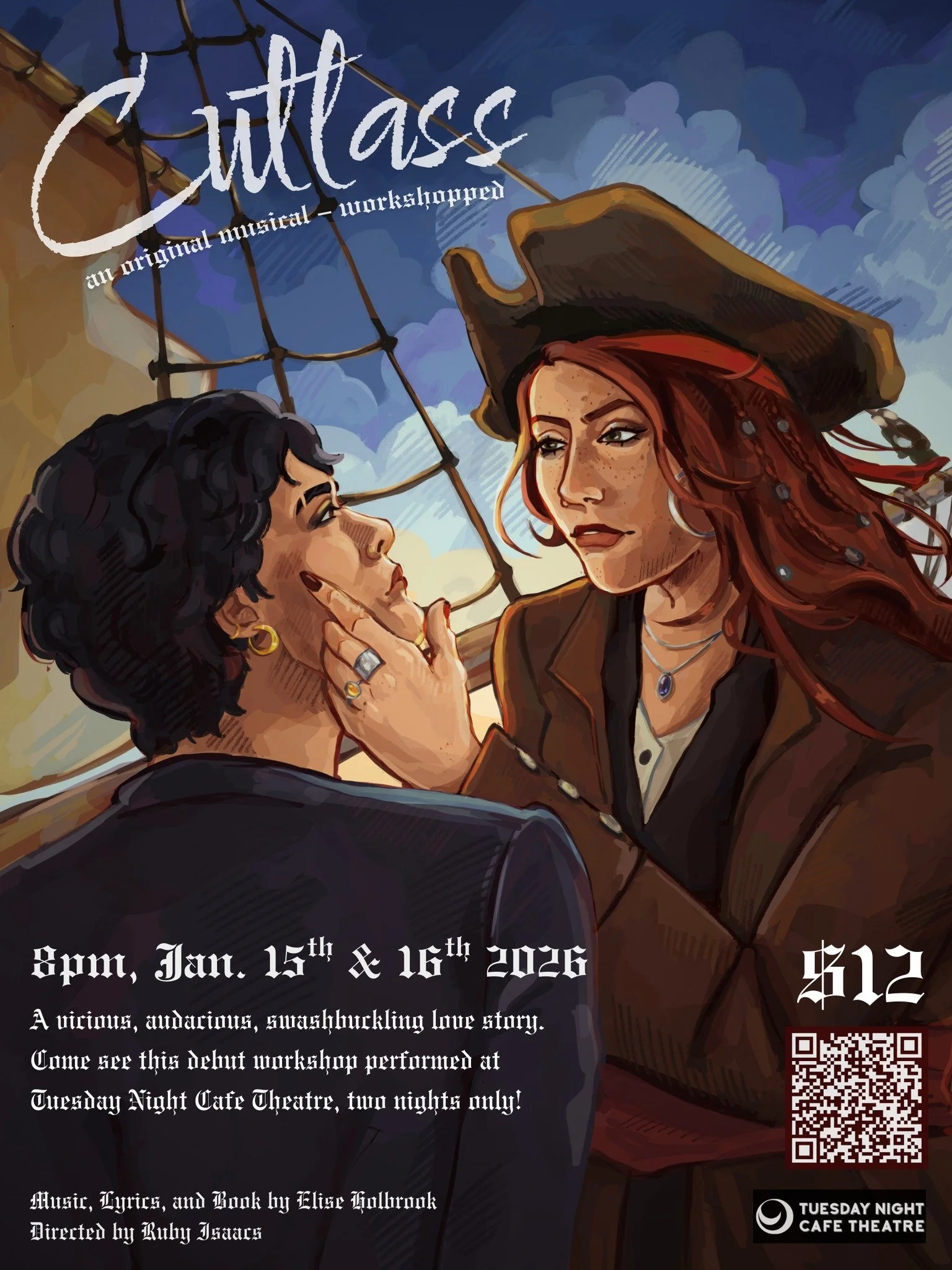 The pirate ship in question was home to the cast and crew of Cutlass, an original musical written and composed by Elise Holbrook. The story centers around two of history’s most infamous female pirates, Anne Bonny and Mary Read, painting a vivid picture of their lives as pirates and as lovers. For two nights only, the crew presented a workshopped version of the musical directed by Ruby Isaacs and produced by Tuesday Night Cafe Theatre, featuring ten songs and four scenes in between. A portion of all ticket sales went towards the Watermelon Sisters, a humanitarian organisation providing life-sustaining support to families in Gaza.