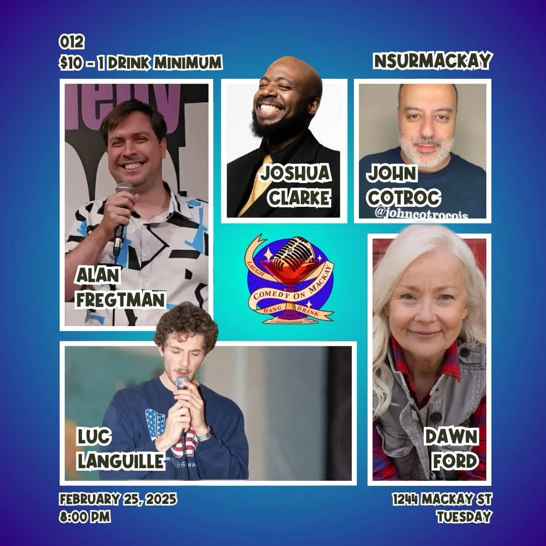 It's another night of hilarious stand-up comedy in the heart of Montreal with Comedy on Mackay #12! The talented lineup of comedians will have you rolling in the aisles with their witty jokes and sharp humour. Don't miss out on this evening of non-stop laughter featuring Alan Fregtman, Joshua Clarke, John Cotroc, Luc Langille, and Dawn Ford. This show is rapidly gaining momentum, so snatch those tickets up. You’ll want to say you remember when, you know?