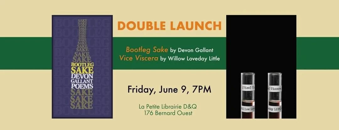Willow Loveday Little and Devon Gallant are both launching their latest books this week! Willow's (Vice) Viscera and Devon's Bootleg Sake take centre stage at their double book launch. Join them for a reading, a signing, a conversation, and some Q&A.