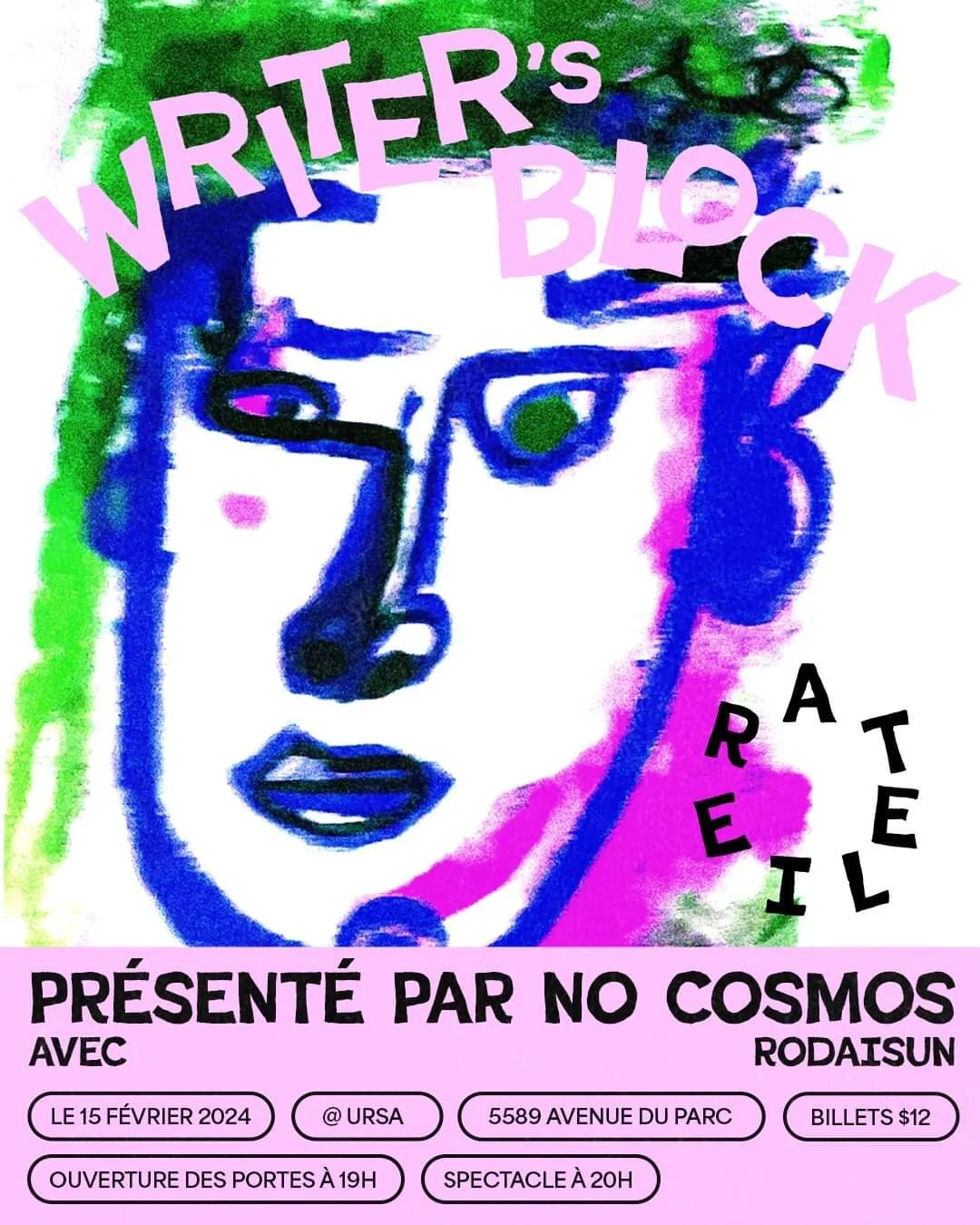 No Cosmos and poetry collective RODAISUN are back for Writer’s Block Volume 2. This is a monthly workshop series where instrumental sound encounters written word. No Cosmos will provide live improvised electronic jazz for this evening of spontaneous collaboration, and you will get writing. Use the music as your guide and coax The Muse together but alone (ya dig?). Bring your deepest feelings and your favourite pen.