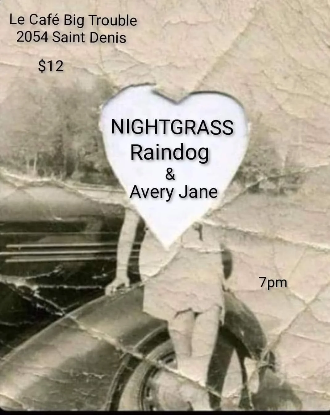 WHAT: NIGHTGRASS, Raindog & Avery Jane
