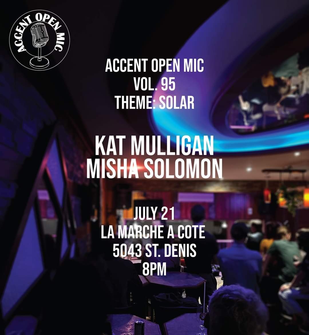 Join us at La Marche a Cote for another evening of poetry with featured readers Kat Mulligan and Misha Solomon.